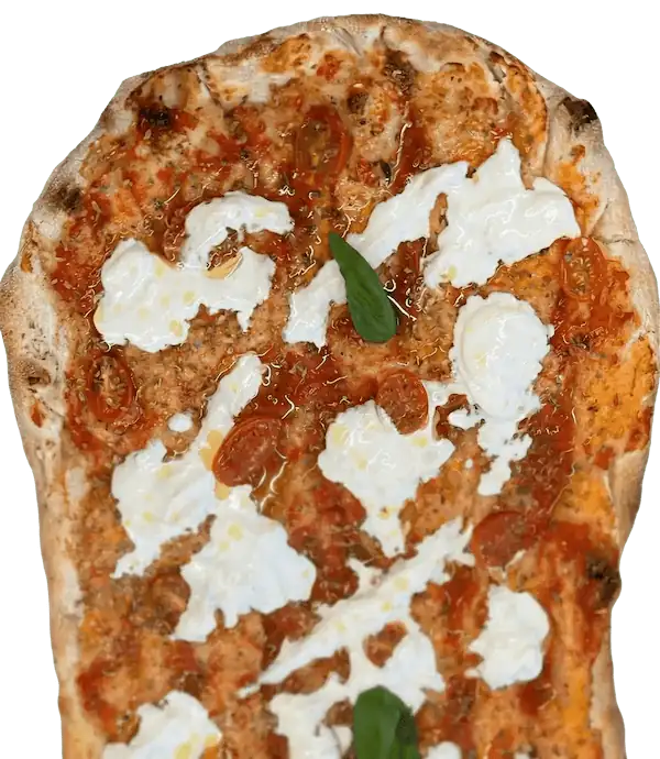 Salsa de tomate, fior di latte, guanciale, pecorino y pimienta